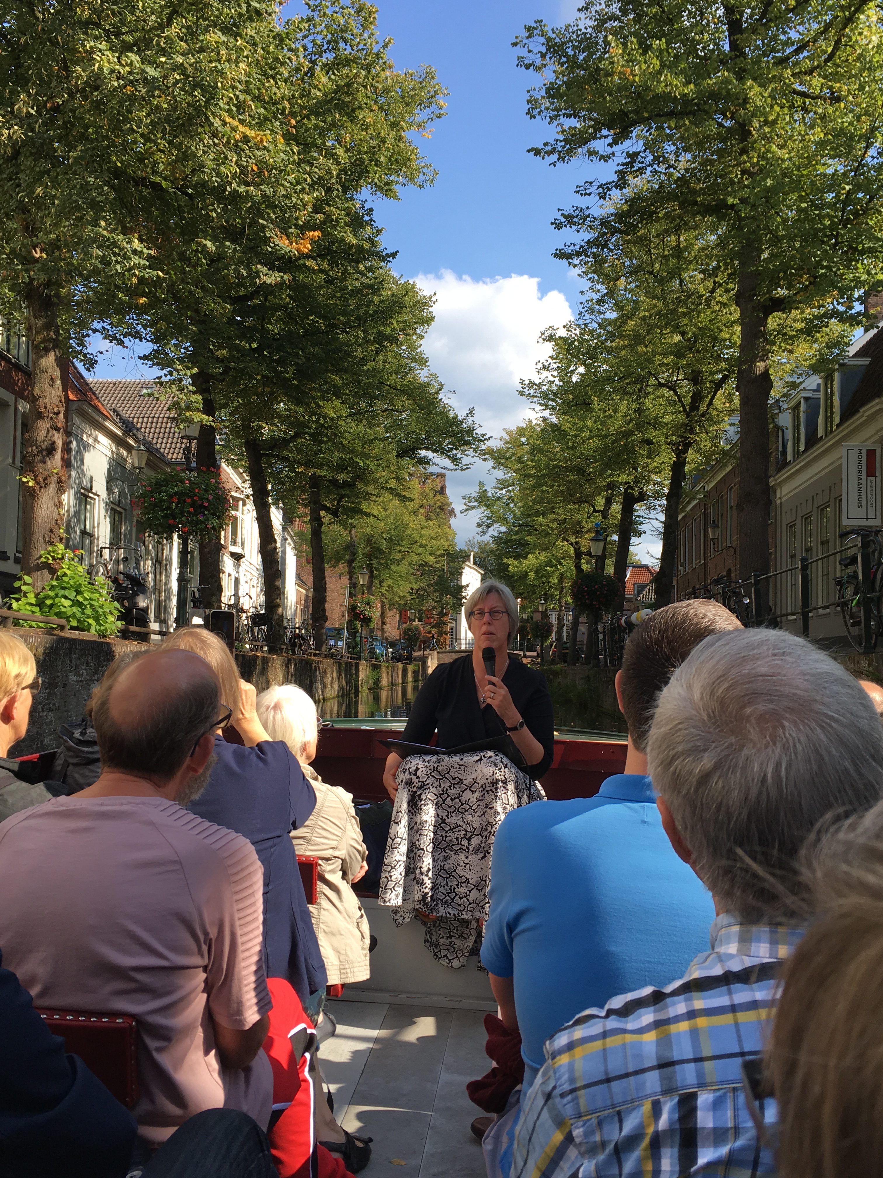 Vanmiddag openden we het nieuwe seizoen met een boottocht en met een mooi verhaal in de zonnige stad. Over Christoffel, de man die mensen overzette bij de doorwaadbare plaats aan de rivier. Zoiets als ooit de voorde bij de Amer (nu de Eem). Stadsdominee Diederiek van Loo voelt de verwantschap met die man die verhalen van passanten aanhoorde, mensen over het water hielp op weg naar hun doel en daarin soms ook Christus tegenkwam. Wat een mooie vergelijking en wat een fijne start van weer een inspirerend programma bij de Amersfoortse Zwaan!