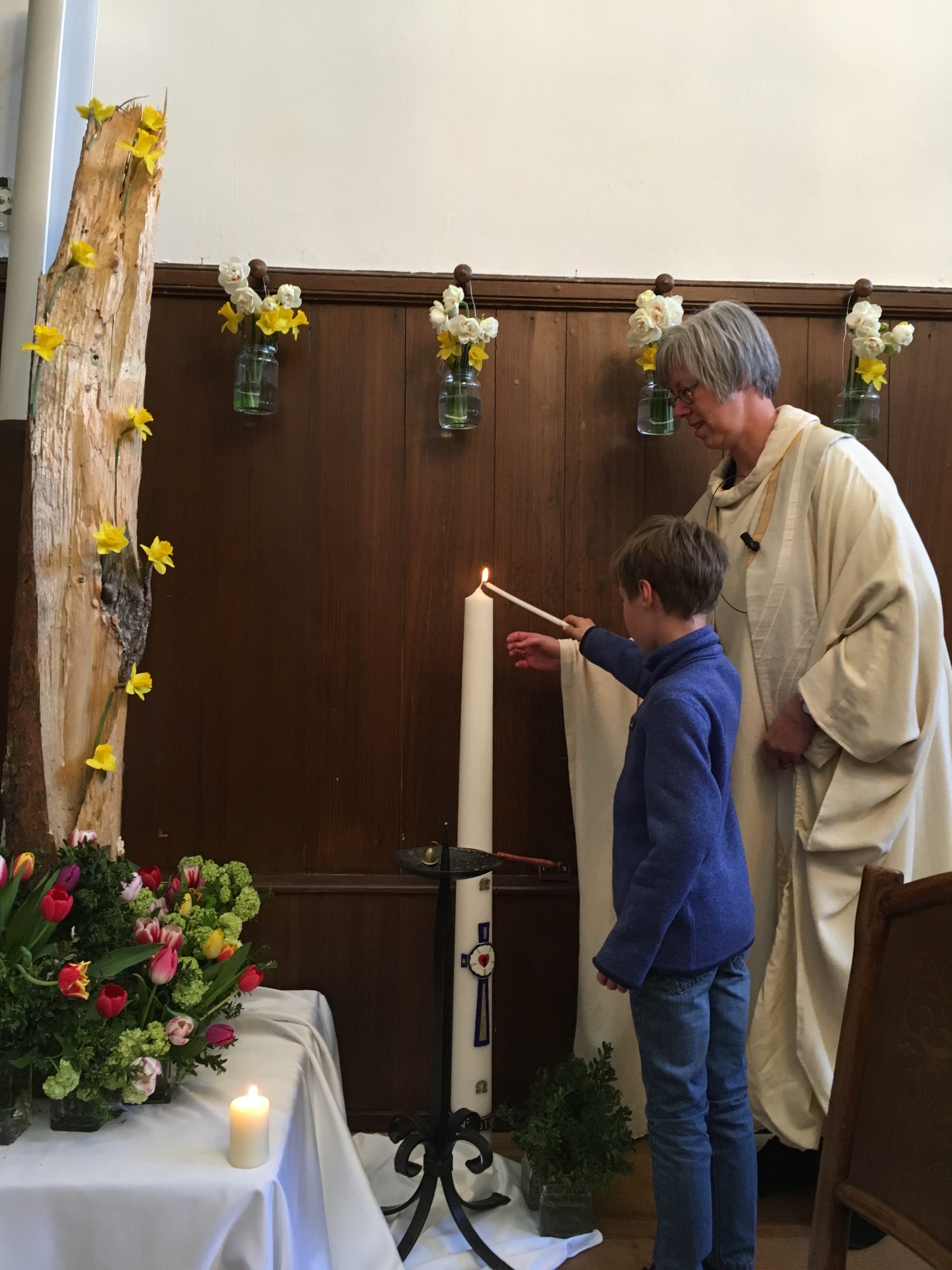 … een feestelijk begin met het licht van een nieuwe paaskaars